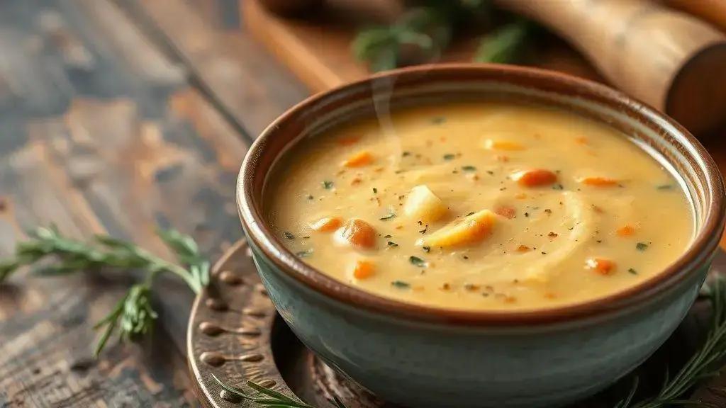 Um truque que poucos conhecem: deixe a sopa descansar por 10 minutos após desligar o fogo. Esse tempo permite que os sabores se integrem completamente e a textura fique ainda mais aveludada. Mexa delicadamente antes de servir para incorporar qualquer separação natural.