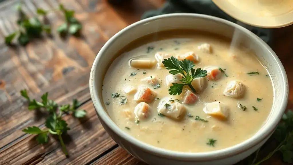 A sopa de abobrinha com frango é uma receita cremosa e nutritiva preparada com abobrinhas frescas, frango desfiado, caldo de legumes e creme de leite. O preparo envolve refogar cebola e alho, adicionar o frango e abobrinhas picadas, cozinhar com caldo e finalizar com temperos. Pode ser conservada por 3 dias na geladeira ou 2 meses congelada, oferecendo versões como mediterrânea, low carb ou sem lactose.