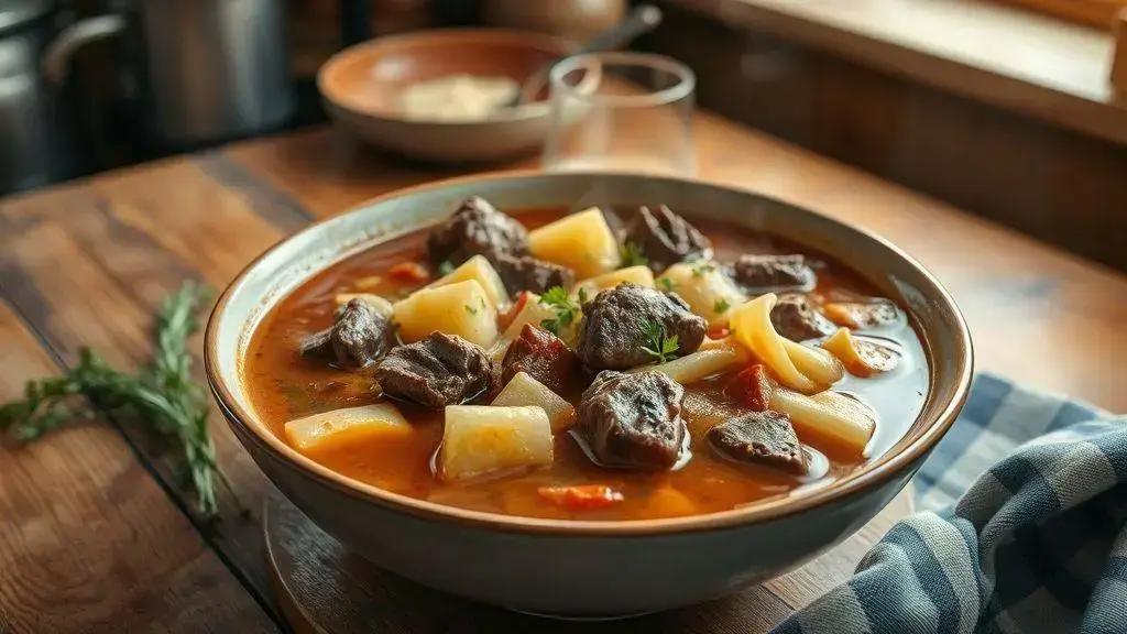 Já imaginou uma sopa de carne com batata e macarrão que lembra a infância? Aquela que aquece a alma nos dias mais frios e reúne a família em volta da mesa. Eu testei várias versões e descobri os segredos para uma receita que vai além do básico.