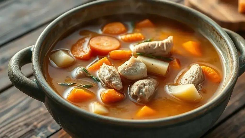 Já imaginou uma sopa de legumes com frango caldo grosso que te transporta direto para a cozinha da vovó? Aquela que aquece não só o corpo, mas também a alma nos dias mais frios? Pois é exatamente essa receita que você vai descobrir aqui – um prato que une simplicidade e sabor de forma irresistível.