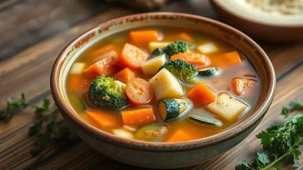 A sopa fit de legumes é uma receita nutritiva e de baixa caloria que auxilia no emagrecimento através do alto teor de fibras e vitaminas. Preparada com ingredientes frescos como cenoura, abobrinha e brócolis, oferece versatilidade para adaptações e pode ser armazenada por até 4 dias na geladeira ou 3 meses congelada.